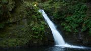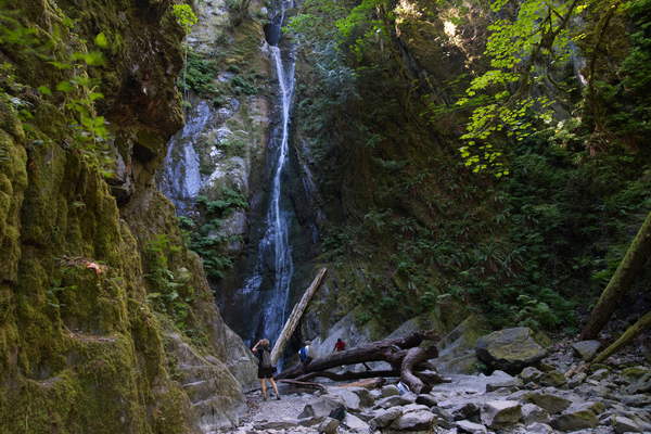 Nach dem Frühstück fahren wir in den Goldstream Provincial Park. Der Verkehr zum Wochenende ist extrem stark, besonders auf der einzigen Straße nach Norden. Für uns ist es nicht sehr weit und wir stellen das Auto am Rande der Straße auf einem Parkplatz ab und gehen den Pfad zum Goldstream-Wasserfall. Es geht durch Regenwald und der Pfad führt am Bach entlang. Fast alle Bäume sind von dichtem Moos bedeckt und die Luft ist feucht zwischen den Bäumen, obwohl heute ein heißer, trockener Tag ist. Der Wasserfall, den wir am Ende des Pfads erreichen, ist schattig gelegen und Beate nutzt die Gelegenheit, um eine Erfrischung im Becken des Wasserfalls zu nehmen. Wir bleiben noch eine Weile und gehen dann anschließend wieder zum Auto zurück. Danach fahren wir ein kleines Stück weiter auf einen anderen Parkplatz und gehen dort auch noch ein Stück weit. Eigentlich ist der Weg zum Niagara-Fall gesperrt, aber in der Information bekommen wir gesagt, dass wir einfach durch den Bachlauf dorthin gehen sollen, denn es ist nur ein kurzes Stück. So schauen wir uns auch diesen Wasserfall an. Er hat deutlich weniger Wasser, besitzt dafür aber eine viel größere Fallhöhe. Ebenfalls sehr sehenswert.