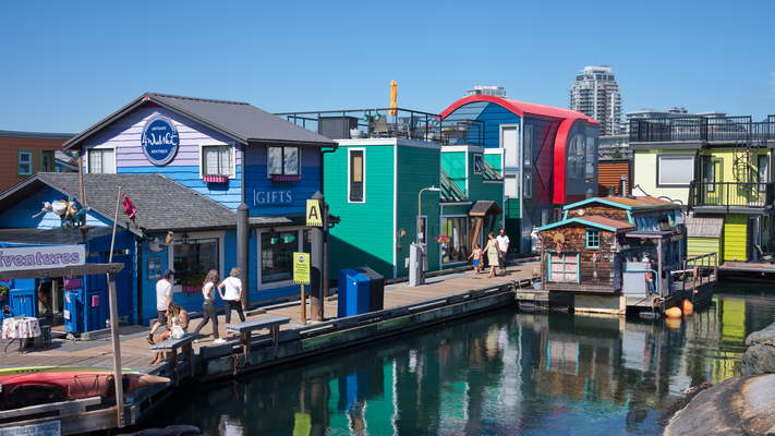 Da es im Park keine weiteren Dinge anzuschauen gibt, fahren wir nach Victoria hinein und schauen uns noch die Stadt an. Im Parkhaus stellen wir das Auto ab und sind auch schnell an der Wasserkante. So bummeln wir dort entlang, kommen am inneren Hafen vorbei, in dem sich ein Flughafen für Wasserflugzeuge befindet, und schlendern weiter zur Fishermans Wharf, in der bunte schwimmende Häuser zu sehen sind, die natürlich von vielen Touristen belagert werden. Auf etwas zu trinken verzichten wir und machen uns wieder auf den Rückweg. Dabei gehen wir noch durch die Einkaufsstraße mit ihren ganzen Souvenirläden.