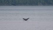 Nach dem Mittagessen und einer Kleinigkeit zu essen lässt sich auch immer mehr die Sonne blicken und es wird zu einer kleinen Kreuzfahrt durch die Insel- und Fjordlandschaft Kanadas. Hinter der Fähre, und damit sich immer weiter entfernend, habe ich noch zwei Buckelwale gesehen, die mit ihren Flossen auf das Wasser eingeschlagen haben, der eine immer mit seiner Schwanzflosse und der andere mit seinen Seitenflossen. So etwas habe ich noch nie gesehen und ich war sehr überrascht. Leider waren sie für Fotos ebenfalls zu weit entfernt.