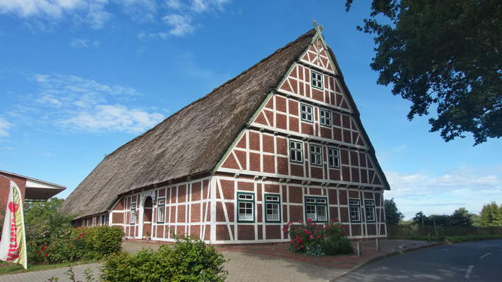 Mein heutiges Ziel ist Hoya. Das Wetter ist immer noch ideal zum Radfahren. Es ist noch kühl am Morgen, als ich gleich nach dem Start noch Getränke holen war und mich dann auf die Strecke gemacht habe. Der Weg schlängelt sich durch die Wiesen und Felder und von der Weser ist hier im Flachland nicht mehr viel zu sehen. Ich denke, es ist heute eine Etappe, um Strecke zu machen. Deshalb habe ich auch entschieden, dass ich den Weser-Radweg verlasse und eine andere Strecke nehme, um die unzähligen Schleifen des Flusses, welchen der Radweg folgt, abzukürzen. So erreiche ich dann gegen Nachmittag mein Ziel Hoya. Dort muss ich aber leider feststellen, dass die Unterkunft, in der ich vorgesehen habe, zu übernachten, eine Baustelle ist und gerade renoviert wird. Viele andere Unterkünfte gibt es in dem Nest nicht und diese sind ausgebucht. Somit habe ich heute das erste Mal ein Thema: eine Übernachtungsmöglichkeit zu finden. Ich telefoniere noch einiges in der Umgebung ab, bis ich schließlich noch was reservieren kann. Es sind aber nochmal eineinhalb Stunden Fahrt bis nach Verden an der Aller. Es geht aber in die richtige Richtung, sodass es keinen Umweg bedeutet. Na ja: Überraschung! Aber es ist noch früh am Tag und die Beine machen noch mit, sodass es kein Problem ist. D. h., ich fahre noch nach Verden.