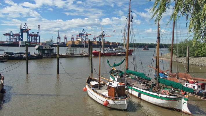 Es ist mein letzter Tag und ich radle noch bis Hamburg, um einen würdigen Abschluss hinzubekommen. Es ist deutlich wärmer, habe dafür aber weniger Rückenwind. Nichtsdestoweniger erreiche ich Finkenwerder recht flott, wo ich die Fähre auf die andere Elbseite nehmen will. Der Radweg führte leider auf dem Weg dorthin nicht, wie von mir erwartet, an den alten Bauernhäusern im Alten Land vorbei, so dass es am Wegesrand nicht allzu viel zu sehen gab. Vom Airbus-Gelände war ich dafür sehr beeindruckt, da ich es seit rund zwanzig Jahren nicht mehr gesehen hatte und es mittlerweile stark gewachsen ist.