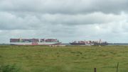 Ich genieße die Fahrt. Der Himmel zeigt nun auch blaue Stellen und hin und wieder kommt auch die Sonne raus. Möwen und Austernfischer kreisen und kreischen, und am Horizont sind unser Ziel Neuwerk in der einen Richtung und in der anderen die Containerriesen im Fahrwasser der Elbe zu sehen.