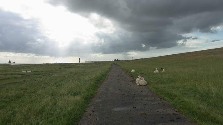 Ich finde, die Landschaft sieht jeweils anders aus, wenn man sich vor oder hinter dem Deich befindet. Leider führt kein Weg auf dem Deich entlang, so dass man eine bessere Aussicht hätte.