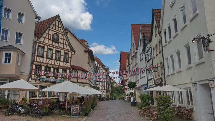 In Besigheim mache ich erst einmal eine längere Pause und esse etwas. Dann folge ich dem Lauf des Neckars auf dessen Radweg. Die Umgebung ist mir ja wohlbekannt, so dass ich versuche, heute etwas Strecke zu machen. So lasse ich am Nachmittag die Stadt Lauffen am Neckar hinter mir. Den ersten Anstieg dort aus dem Tal heraus habe ich auch gemeistert und nun nähere ich mich Heilbronn. Als ich die Stadt erreiche, lege ich noch eine längere Pause ein. Da ich jetzt abschätzen kann, dass ich es in einer Stunde noch nach Bad Wimpfen schaffe, schaue ich nach einer Unterkunft und buche mir ein Zimmer in der Altstadt.