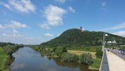 Dort angekommen hatte ich noch kurz überlegt, zum Kaiser-Wilhelm-Denkmal hinaufzufahren und die sicherlich gute Aussicht zu genießen, aber die Steigung war mir zu steil und zu lang, so dass ich den Gedanken gleich wieder verworfen habe. Stattdessen mache ich eine Rast an der Weser und kehre in einem Biergarten ein.