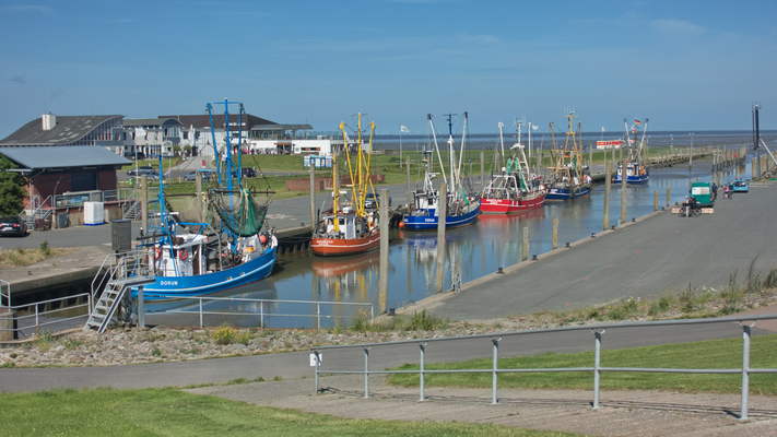 Anschließend radle ich ausschließlich an der Küste entlang und dabei vor allem vor dem Deich, was herrlich ist. Die Sonne scheint, ich komme durch den Rückenwind schnell voran und mache deshalb zwischendurch immer mal wieder eine Pause, wobei ich den Ausblick aufs Wattenmeer genieße, während das Wasser gerade abläuft.