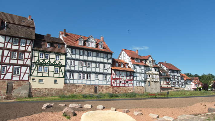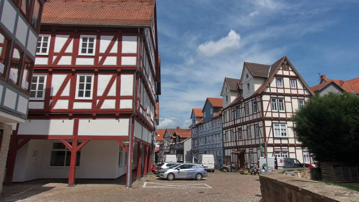 Danach schaue ich mir die Altstadt von Melsungen ebenfalls an. Ich stelle das Fahrrad ab und laufe in der Altstadt herum. Die vielen Fachwerkhäuser sind auch hier sehr beeindruckend, wobei das besonders schöne Rathaus heraussticht.