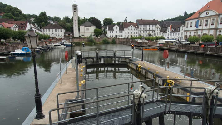 Ich reserviere noch telefonisch für heute Abend eine Unterkunft in Bad Karlshafen, was ich noch erreichen will, denn ich möchte mir den Ort mit seinem geschichtlichen Hafen heute Abend noch anschauen.